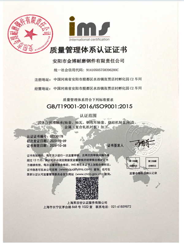 无油自润滑轴承不但可在铝锭铸造机上较好地得到运用,同时可适应于无油、高温、高负载、低速度,防污、防蚀、强辐射环境中的运动幅,以及在水中或其它溶液浸润而根本无法加润滑油脂的特殊工况条件下的设备,此类轴承具有较广的推广价值。